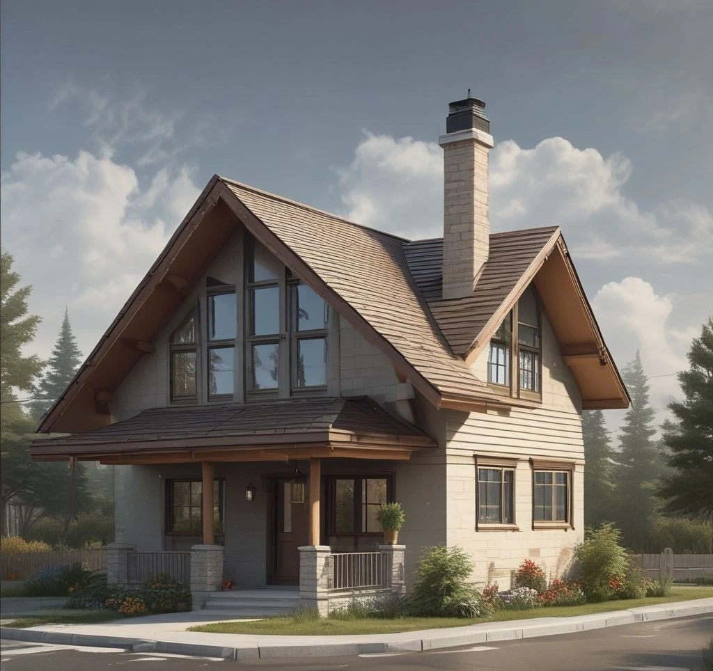 Structure: The structural design of the roof influences how air moves around and through it, affecting heat loss and gain. A steeply pitched roof, for example, may provide better ventilation and thus reduce cooling needs compared to a flat roof. Additionally, the design can accommodate features like eaves and overhangs, which provide shade and further control the amount of sunlight hitting the house.